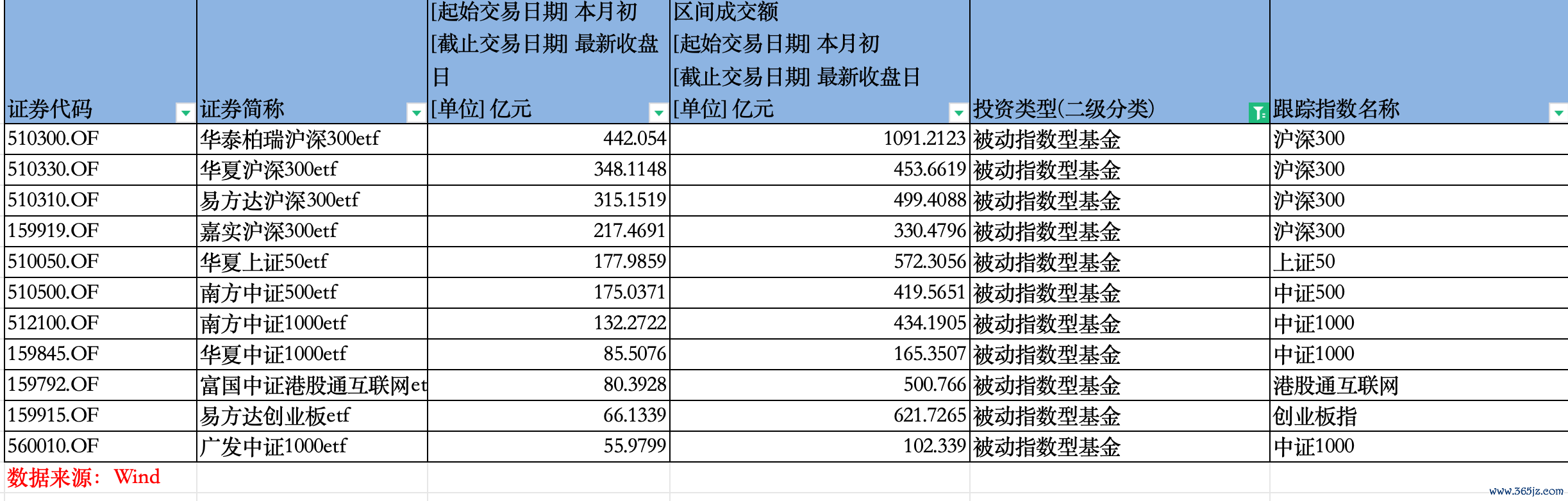 从规模变动看,规模最大的沪深300ETF月内规模增长1017.89亿元,截至目前为10448.16亿元。同期,中证1000ETF、上证50ETF、中证500ETF规模分别增长249亿元、178亿元、102亿元。