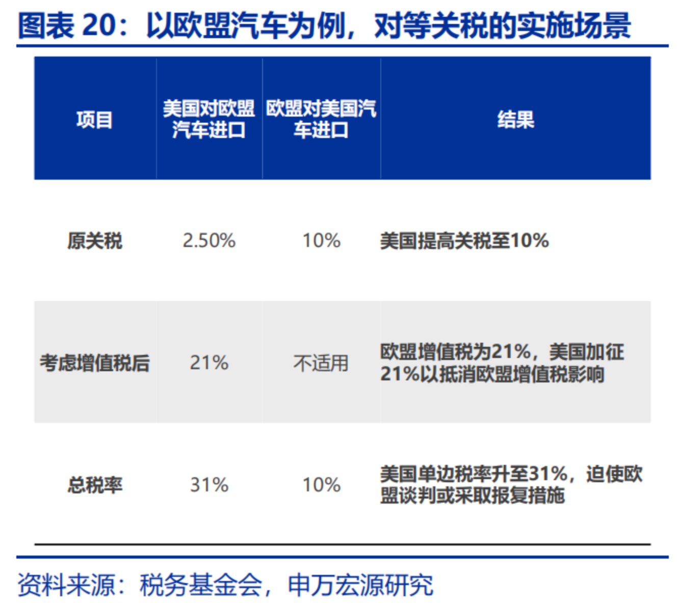 欧盟占据美国贸易逆差约20%,欧洲国家成为特朗普关税重点“关照”对象。2月26日,特朗普威胁将对欧盟征收25%关税。对等关税角度,仅考虑关税的情况下,美国与贸易伙伴的税率差距并不大,但将增值税及关税均考虑在内后,税率或将大幅提高。欧盟的平均增值税为21.8%,德国19%、法国20%、意大利22%,均明显高于美国。由于欧洲经济外贸依赖度较高,关税在短期内可能成为欧洲经济重大下行风险来源。